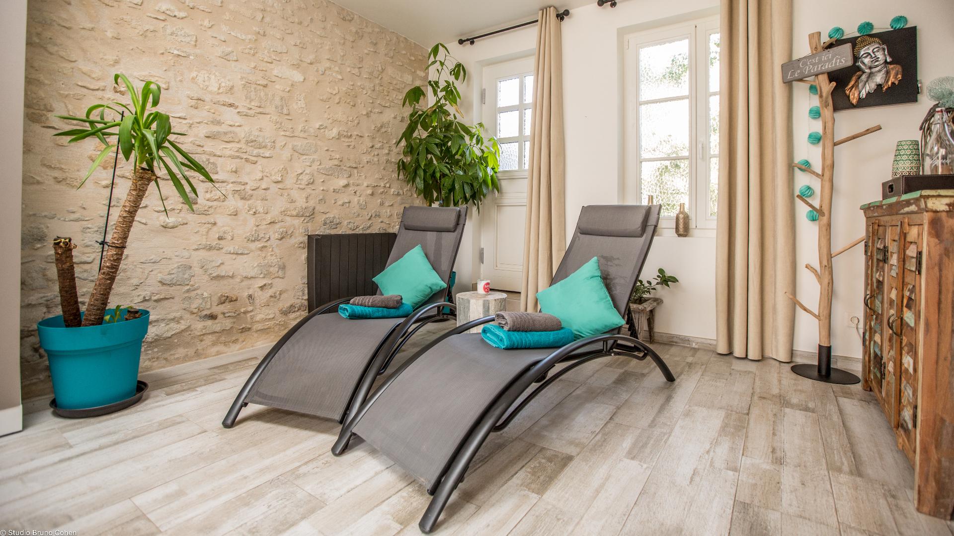 C’est s’offrir un repos dans le hammam oriental, dans le sauna Finlandais ou dans les jacuzzis intérieur et extérieur, avant de déguster un cocktail sur la terrasse lounge, couverte d’une pergola bioclimatique ou dans notre espace repos intérieur.